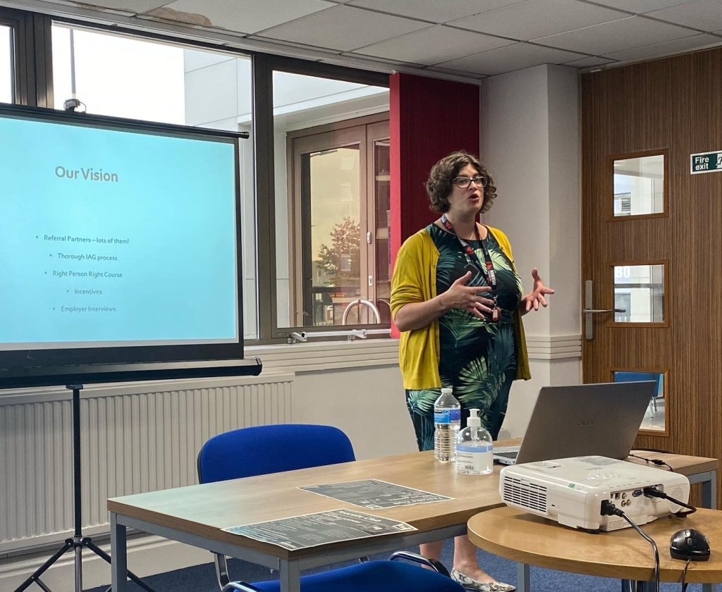 Liz explained how Momentum started in the engineering sector, moving into training 10-12 years ago. She explained the range of EAB-funded provision available in Sheffield, which includes Construction, SIA Security, Fork-Lift Truck and Welding. Liz explained that Momentum offers IAG and employability skills support, and will shortly be offering a Skills Bootcamp in engineering.