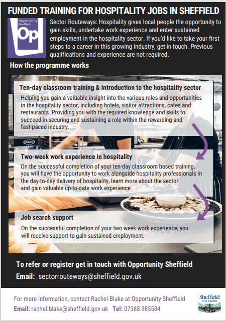 Opportunity Sheffield is now now recruiting for the November Hospitality Sector Routeway.