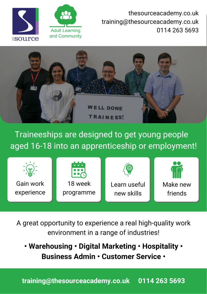 Traineeships for 16-18-year-olds at The Source; range of sector opportunities available Opportunity The Source October 20, 2022 1 Minute Share this: Click to share on X (Opens in new window) X Click to share on Facebook (Opens in new window) Facebook Like Loading... Related Published October 20, 2022