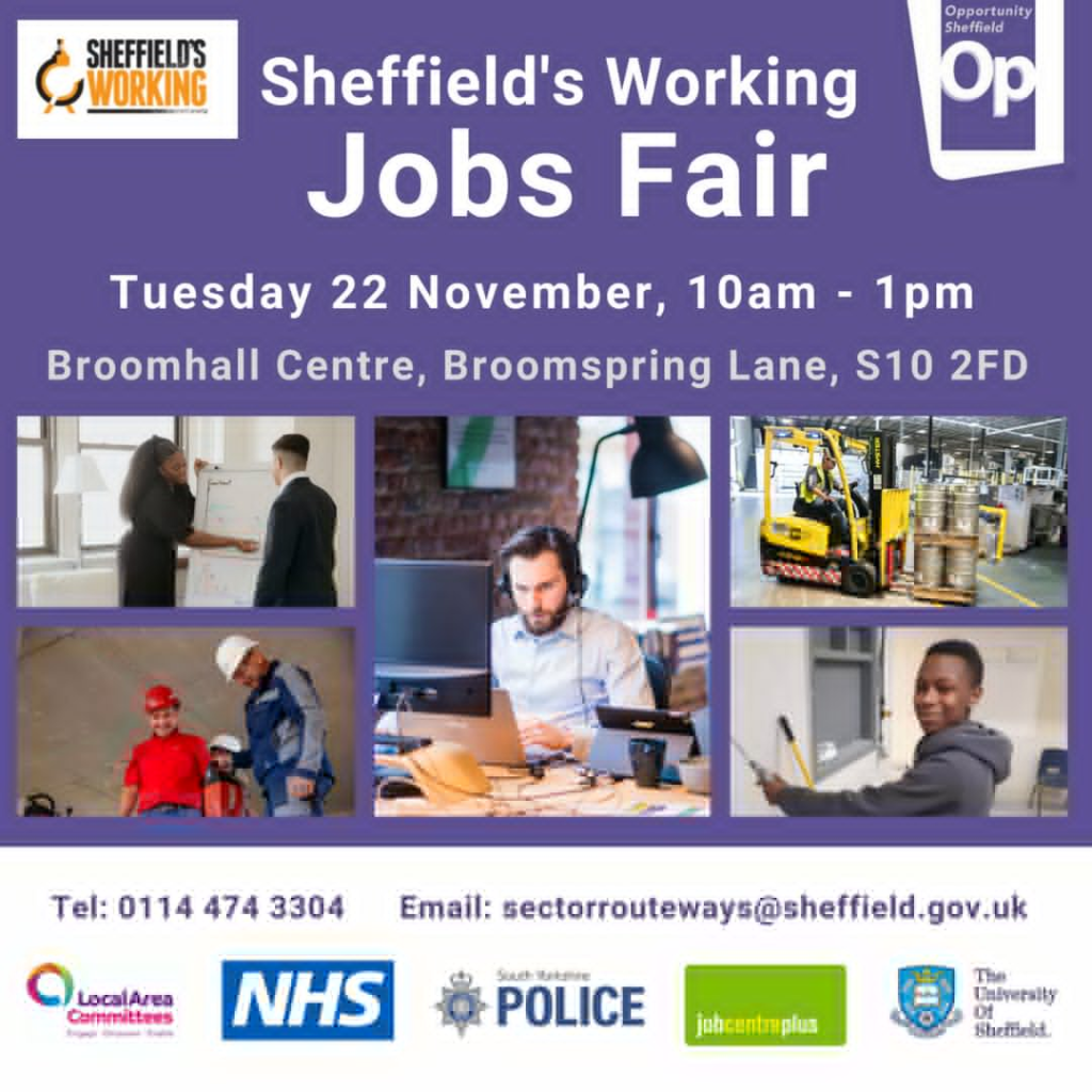 The concluding Sheffield’s Working Jobs Fair of 2022 will take place at the Broomhall Centre on Broomspring Lane on Tuesday 22 November.