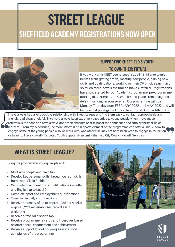 Registrations for Street League’s next Academy in February 2023 are now open and the provider is taking referrals.