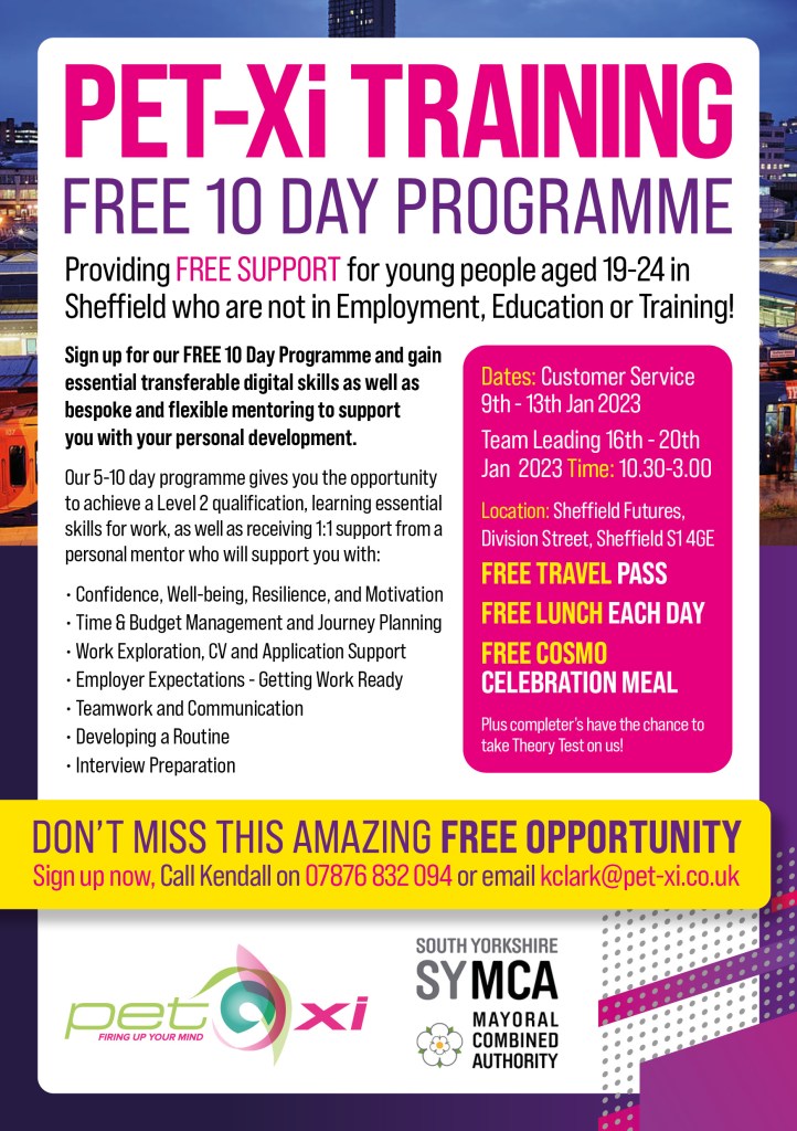 Providing FREE SUPPORT to young people aged 19-24 in Sheffield who are not in Employment, Education or Training. (born before 31/08/2003)