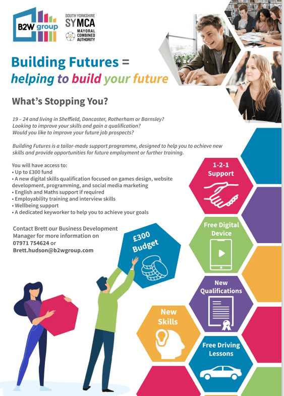 As a refresher for anybody not aware of what support we offer: B2W Group are delivering our “Building Futures” Programme, this is delivered fully online with our tutor via MS Teams, our learners are fully support throughout their leaner journey with a keyworker supporting them with coursework and with everything employment related.