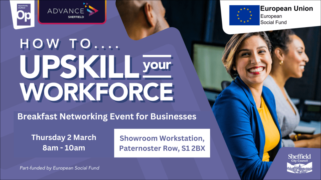 How to Upskill Your Workforce is a networking event aimed at Sheffield employers and their employees. It will be taking place on Thursday 2 March from 8am – 10am.
