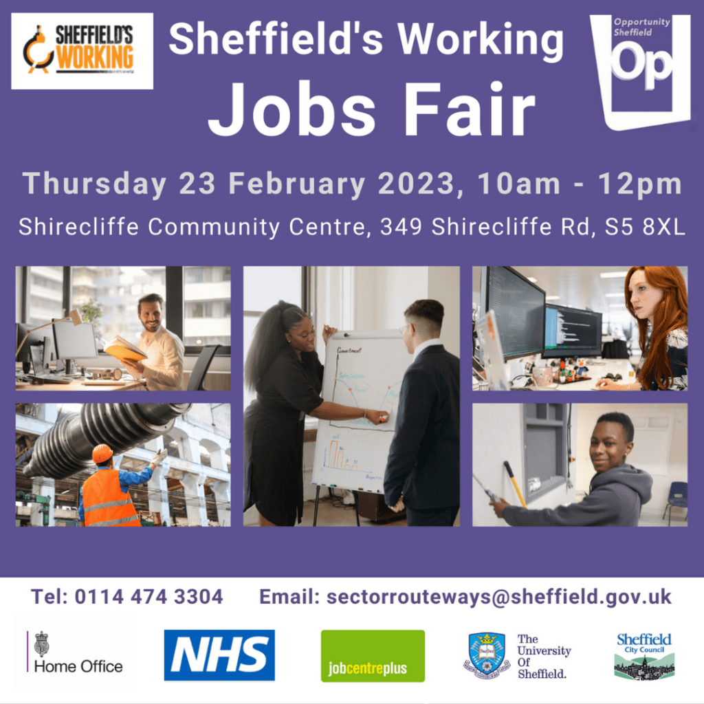 Opportunity Sheffield’s next Sheffield’s Working community job fair will be held in Shirecliffe on Thursday 23 February 2023.
