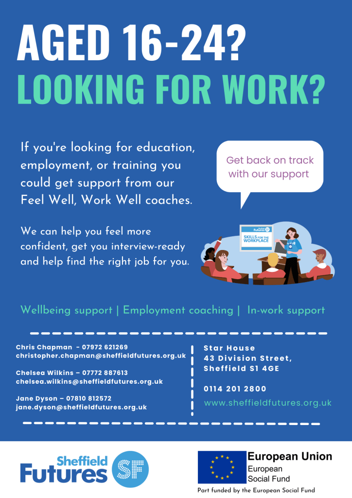 Sheffield Futures’ Feel Well, Work Well programme offers employability support to 16-24s Opportunity Sheffield Futures February 8, 2023February 13, 2023 1 Minute Share this: Click to share on X (Opens in new window) X Click to share on Facebook (Opens in new window) Facebook Like Loading... Related Published February 8, 2023February 13, 2023