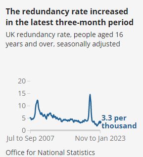 The redundancy rate was 3.3 per 1,000 employees in November 2022 to January 2023. When comparing quarterly changes, we compare with the previous non-overlapping 3-month average time period (for example, comparing November to January with August to October, not with October to December).