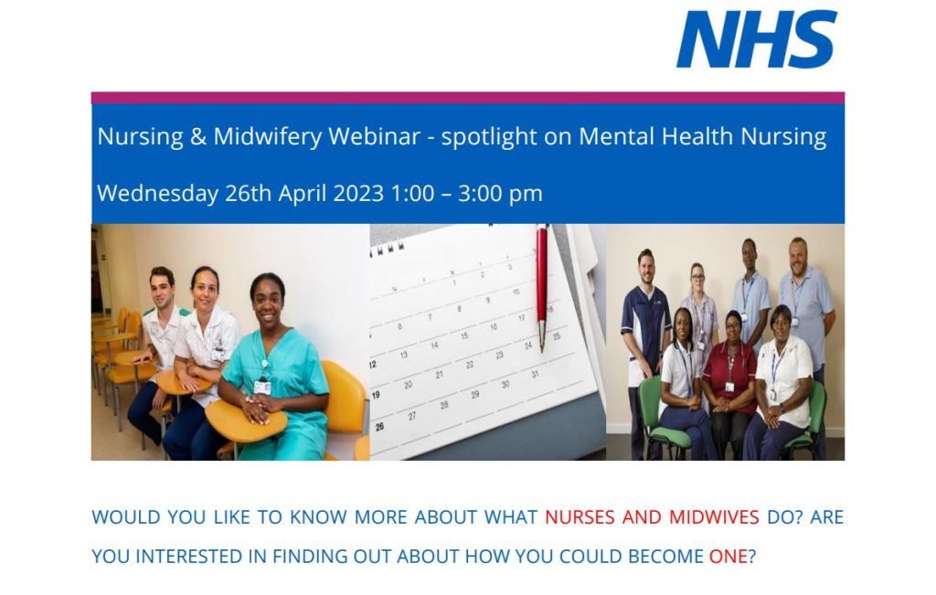 Register now for Routes into Nursing and Midwifery Webinar – Spotlight on Mental Health Nursing on Weds 26 April Opportunity NHS March 16, 2023 1 Minute Register for the webinar here Share this: Click to share on X (Opens in new window) X Click to share on Facebook (Opens in new window) Facebook Like Loading... Related Published March 16, 2023