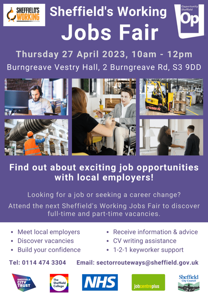 Opportunity Sheffield’s next Sheffield’s Working community job fair will be held in Burngreave on Thursday 27 April 2023.