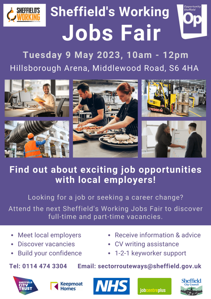 Opportunity Sheffield’s next Sheffield’s Working community job fair will be held in Hillsborough on Tuesday 9 May 2023.
