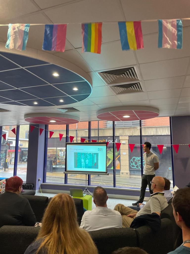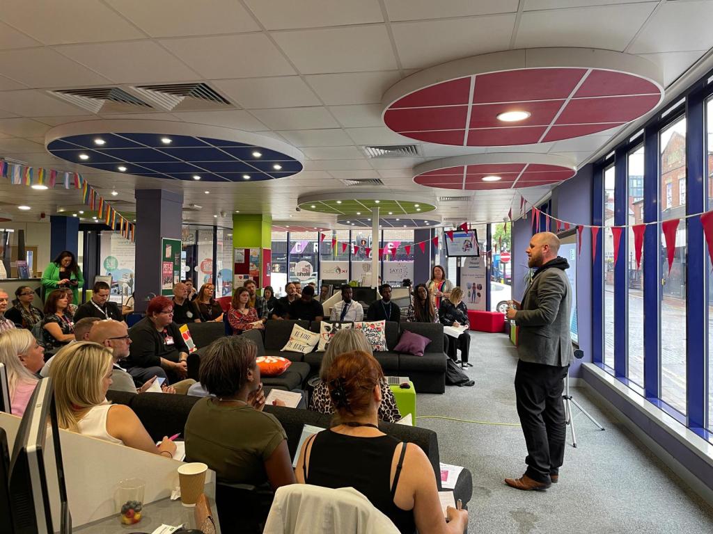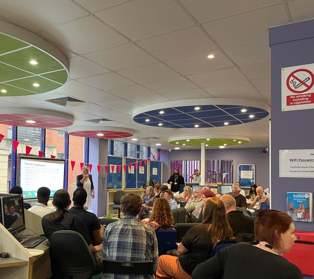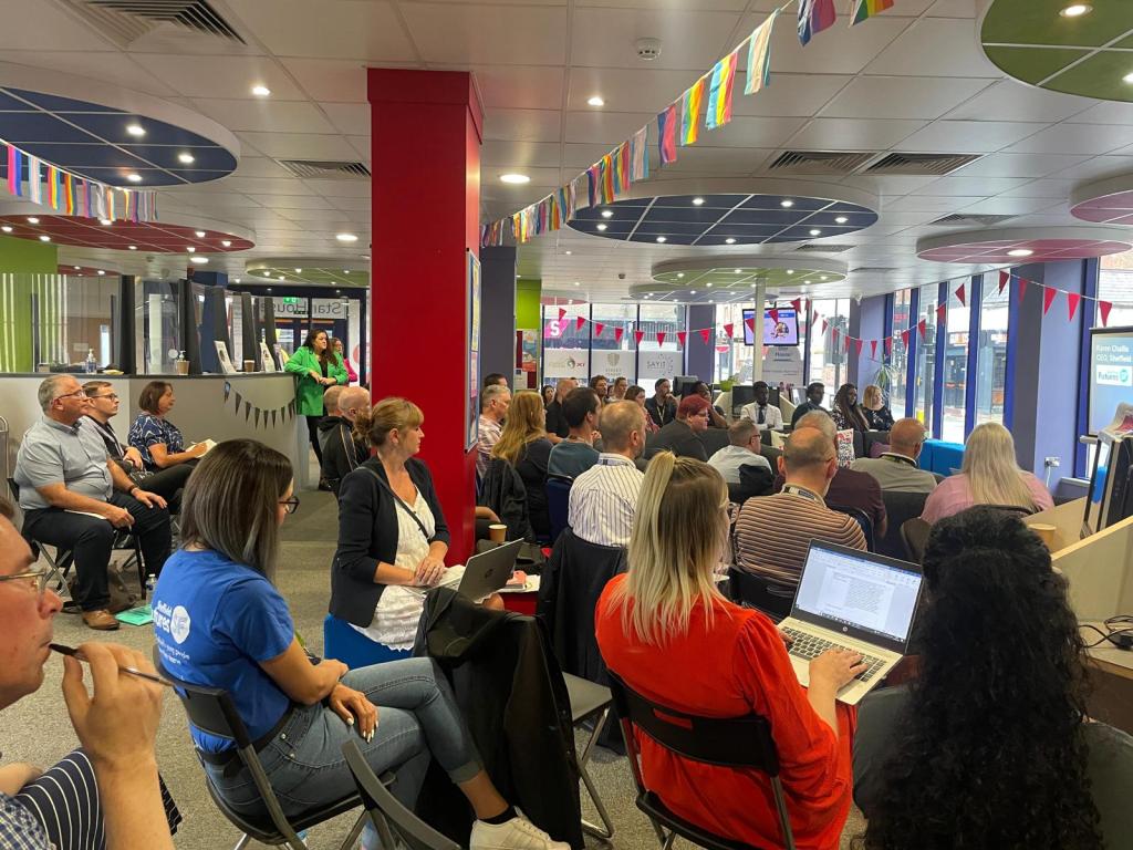 Karen welcomed everyone to Star House and noted that they had not seen so many people in the building since before the Covid pandemic. Sheffield Futures was established in 1995 and has continuously responded to the needs of young people in the city. Karen spoke about the range of activity that Sheffield Futures undertakes, such as youth work, wellbeing cafes and social prescribing work with GP’s. We heard about the number of young people who are experiencing mental health challenges, and initiatives like Door 43 which offer a space for young people to go and be supported free from any stigma. Karen spoke about the success of Sheffield Futures’ work with care leavers, building on it’s Project Apollo programme, and the desire to work with as many partners as possible. Current partners within Star House are PET-Xi, SATiT, Suit Works, Street League and The Growth Company.