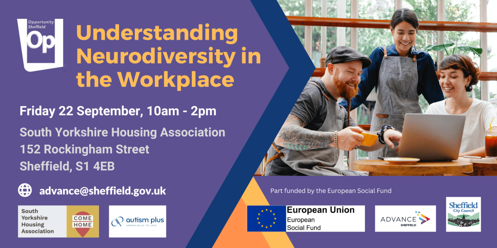 The event is intended to support attendees to better facilitate and work with neurodiverse colleagues. Speakers will include Autism Plus, Department for Work and Pensions’ (DWP) Access to Work team and Opportunity Sheffield’s Local Supported Employment team.