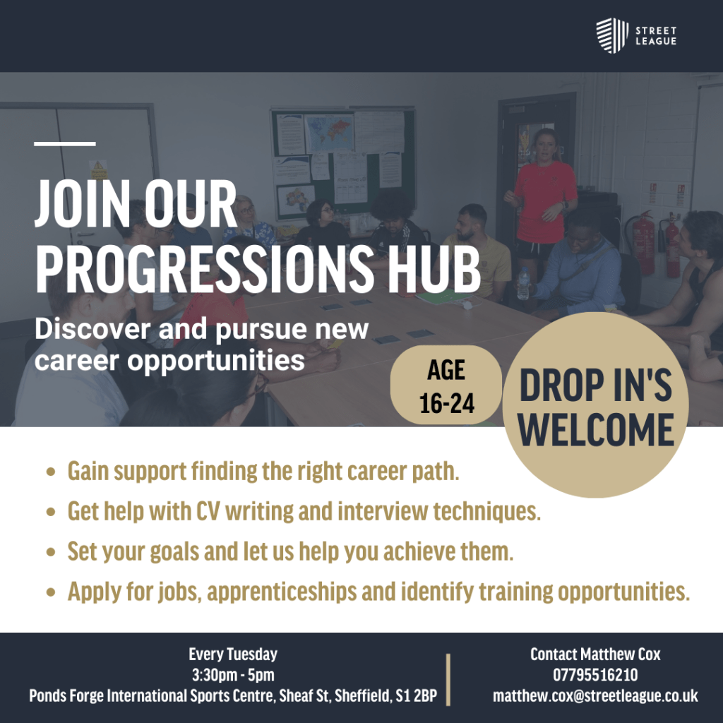 Street League Progressions Hub now open Opportunity Street League November 14, 2023 1 Minute Share this: Click to share on X (Opens in new window) X Click to share on Facebook (Opens in new window) Facebook Like Loading... Related Published November 14, 2023
