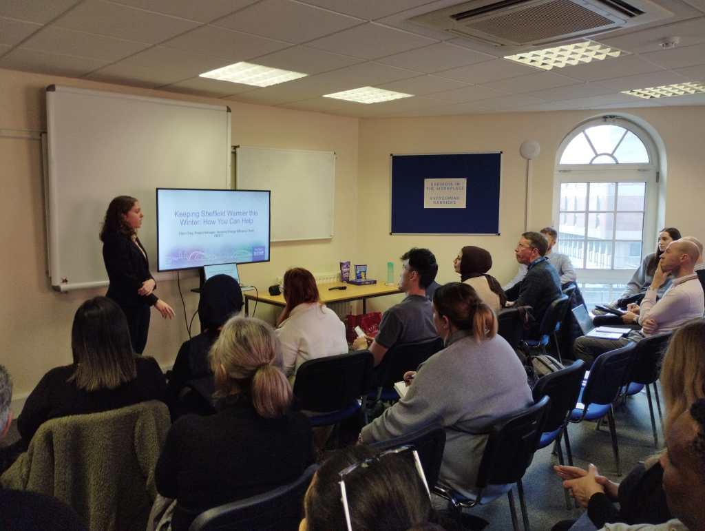 Ellen introduced some of the support available through the Warm Homes scheme, run through SCC’s Housing Efficiency Team. She explained that there are two pathways for support; energy advice and grant funding.