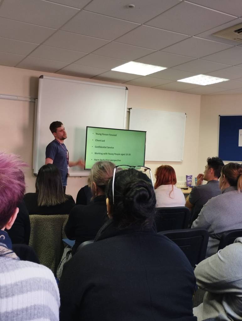 Brad introduced The Corner, Sheffield’s young people’s drug and alcohol service. The Corner support young people up to the age of 18 (sometimes slightly beyond that for a transition period) with substance abuse issues. We heard that this is a tailored, confidential, 1:1 service and is free to access for any young person struggling with substance misuse (not tobacco or nicotine as this is covered by Smoke Free Sheffield).