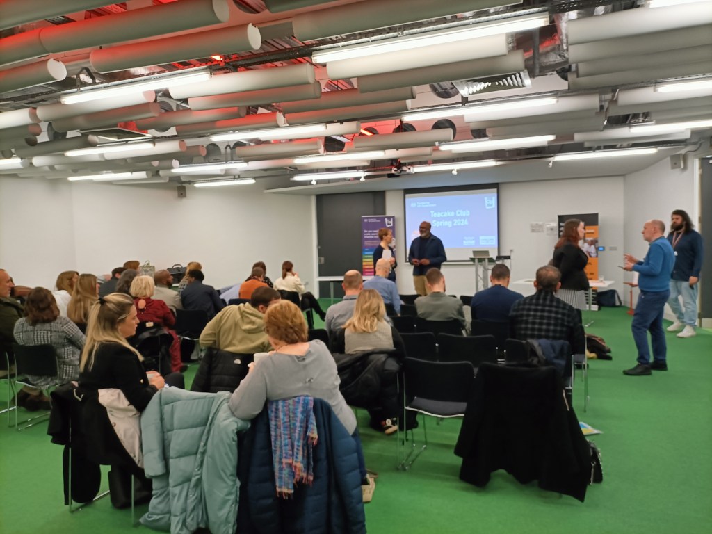 Ross Brown, Contract Manager at Opportunity Sheffield, welcomed guests to the Spring Teacake Club Meeting, hosted by Business Sheffield at Electric Works on Friday 19 April 2024.