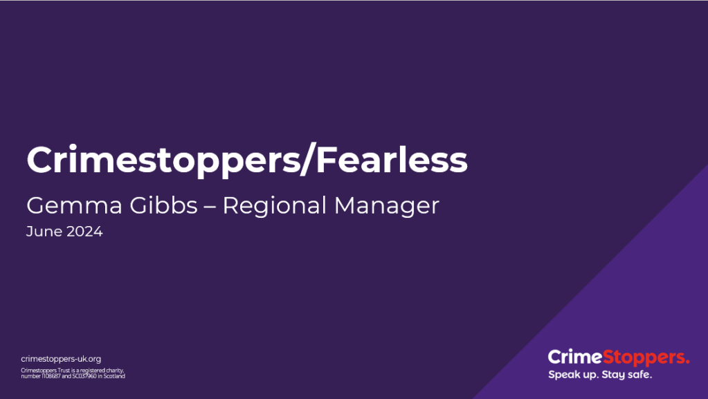 To find out more, email: gemma.gibbs@Crimestoppers-uk.org or visit the Crimestoppers website.