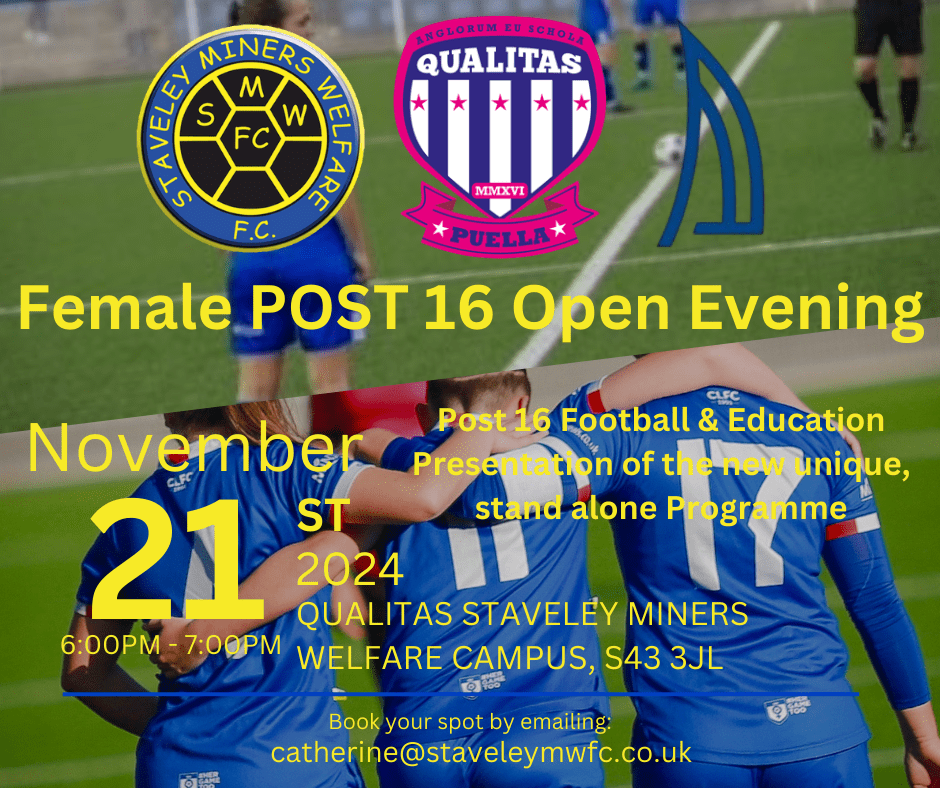 Qualitas Sport is inviting young women to the Post 16 Female Programme Open Evening featuring a presentation. Full details below: