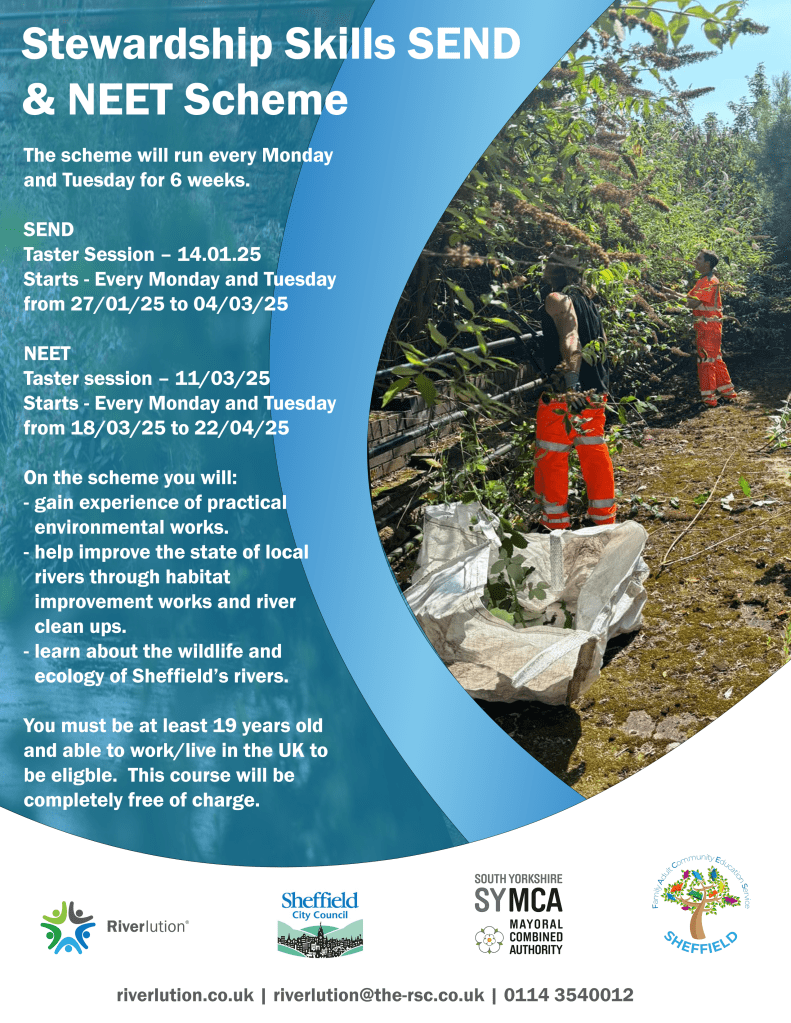 Riverlution and Sheffield City Council are launching a Stewardship Skills scheme for young people aged 19+ They are running two taster sessions ahead of their start dates: